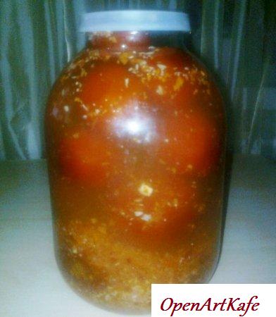 10 кг незначительных помидор, 5 л. воды, четыресто грам уксуса, четыресто грам сахара, 200 грам соли, 3 головки чеснока, 3 морковки, 3 огромных болгарских перца, 15 пилюль аспирина.Квашеные помидоры чрезвычайно смачные, под капроновой крышкой помидоры, приготовляются скоро, на быструю руку, беречь в холодном участке.