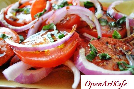 200 грам томатов, 20 грам зелени базилика, 1 маленькая красноватая луковица, соль и молотый темный перец по вашему вкусу, для заправки 2-3 столовые ложки оливкового масла.Помидоры с базиликом раздобываются чрезвычайно ароматные и лакомые. Ведь сочетание помидоров и базилика это совершенно. Попытайтесь и для вас непременно приглянуться.