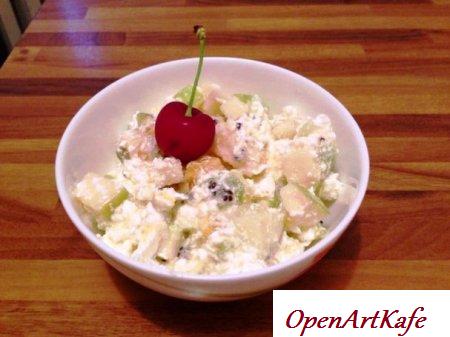 Фруктовый салат с творогом ласковый, беглый и чрезвычайно аппетитный, приготовляется на быструю руку.