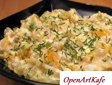 5. Готовый салат из печени скрашиваем по жажде зеленью, можнож тертым желтком.