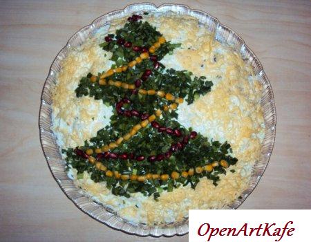 6. Я украсила по-новогоднему: ниточкой выложила елочку, посыпала тонко порезанным луком.