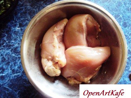 1. Куриное филе порезать вдоль как на отбивные, чем преимущественно кусок мяса, тем превосходнее.