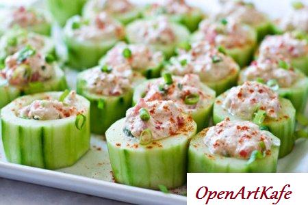 1. Сшибить кожуру с огурцов, порезать пенечками поОгурцы, фаршированные сельдью — чрезвычайно аппетитная, великолепная неотзывчивая закуска.